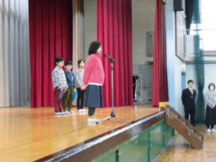 1年生と4年生の代表児童が2学期を振り返り、発表をしました。