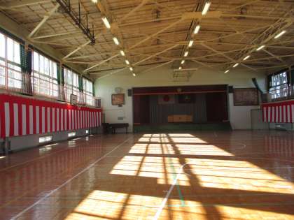 担任の先生も紅白幕の設置された厳粛な雰囲気の体育館でイメージトレーニングをしています。