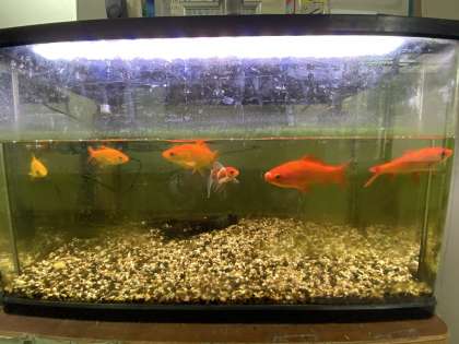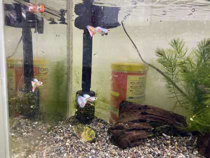 学校ではきんぎょのとなりにあたらしいおともだちがきました。グッピーたちです。しゅじさんがもってきてくれました。