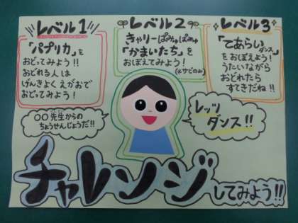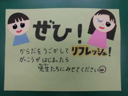 メッセージ(めっせーじ)の実物(じつぶつ)は、こんど学校(がっこう)にきたときにはってあるので、みてね!