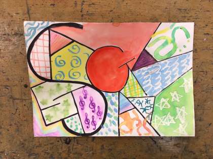 また、図工の課題は配布した資料の中のA4の画用紙の白い面にやって下さい。裏にふりかえりを書くところがあります。