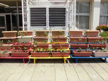 さて、きょうは 2年生の先生たちで あさからやさいのなえをうえました。