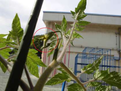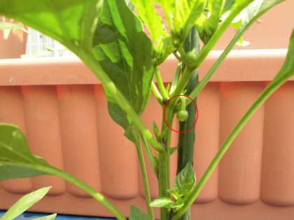 1まい目は ピーマンです。すこしつぼみが できはじめています。