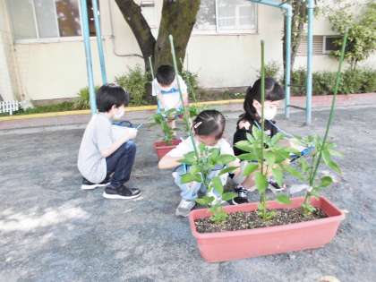 やさいの かんさつでも みつに ならないように こうたいしながら こまかいところまで よくみて かんさつすることが できましたね。