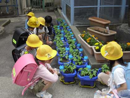 連休明けに種を植えたあさがおが芽を出して、本葉が出てきました。門の側に置いてあるうえ木ばちをながめながら、大きくなるのを楽しみにしています。そろそろ、つるものびてくるでしょう。大きくなあれ!