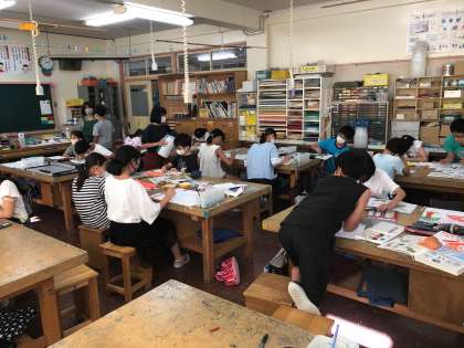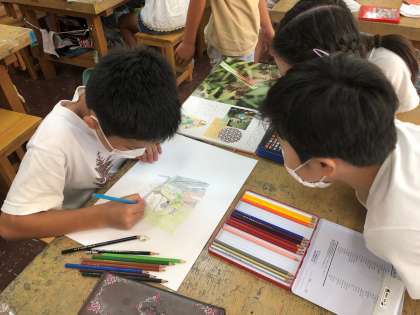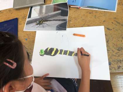 図工の時間、5年生はトンボの絵を描きました。