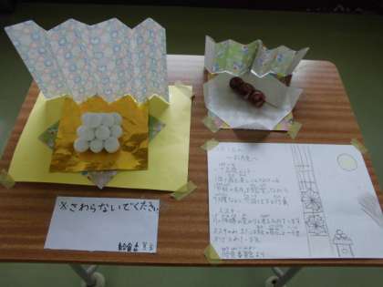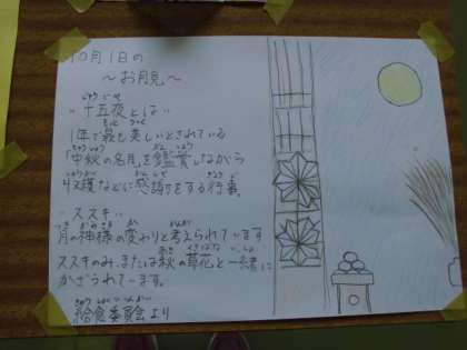 給食委員会の児童が、校舎の各階に「十五夜」の飾りをしてくれています。
