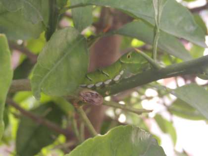 「私は虫が好きです。アゲハの幼虫がいたのでこの写真を撮り、見ている人にも幼虫が好きになってほしいです。」