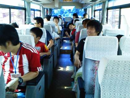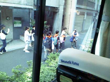 待ちに待った河口湖移動教室がいよいよ始まりました。出発式を終えてバスに乗ってひと息つきました。松沢小学校の友達と合流して河口湖へ向かいます。