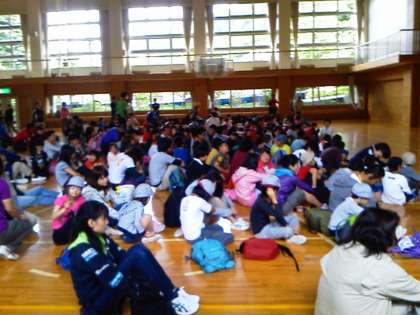いよいよ宿舎とお別れ。閉園式もしっかりできました。学園を出発しましたが、天候が良くないので見学と昼食場所が富士山レ−ダードームとアリーナに変わります。
