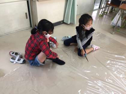 2組の総合では、トマトの植え付け、ビニールハウス作りを同時に進めています。