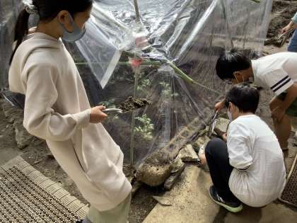 「土の温度を測りたいので、温度計を貸してほしいです!」