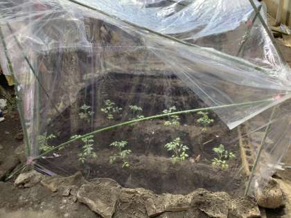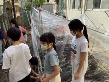 完成にひたるまもなく、その完成度、トマトの生長が気になる子どもたちでした。
