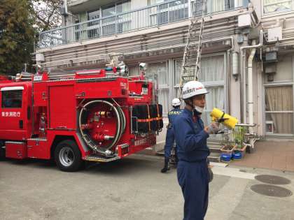 世田谷消防署の方、宮の坂出張所の方が消防車に乗って、学校に来てくれました!