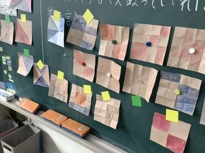 多くの子どもたちは、折り紙を半分にして、その1つ分に色を塗っていました。