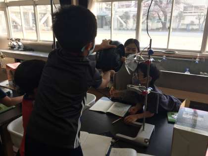 子どもたちの意見でも出た「風車」を体験するために理科室へ!