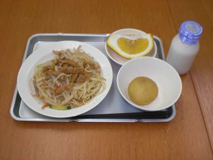 今日の給食は、冷し中華・ふかしいも(じゃがいも)・美生柑・牛乳です。