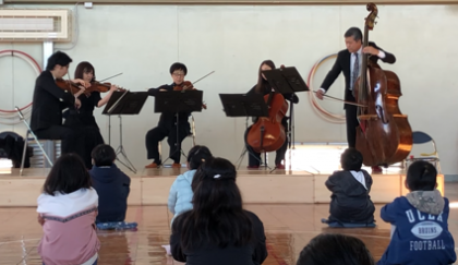 本校体育館に東京フィルハーモニー交響楽団の方たちが来てくださいました。