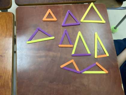 3色の棒(3種類の長さの辺)で三角形を作りました。