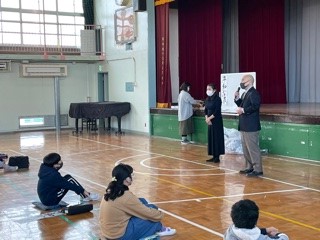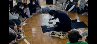 6年生は書道家の方に、書き初めの課題「平和な春」の書き方を教わりました。