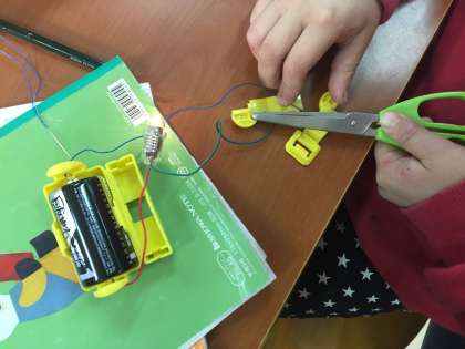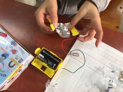 今日は身のまわりにある物を使って、何が電気を通して、何が電気を通さないか調べました。