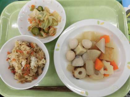 おでんは、かつおぶしとこんぶのおいしいだし汁がおでんの具にたっぷりしみこんでいます。