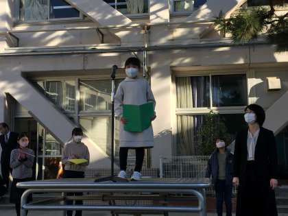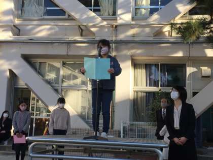 3学期の始業式で3年生の児童が代表の言葉を担当しました。