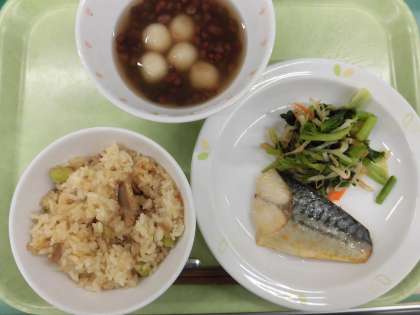 1月11日は鏡開きでした。今日の給食は鏡開きにちなんで、しらたまもちが入ったおしるこを作りました。