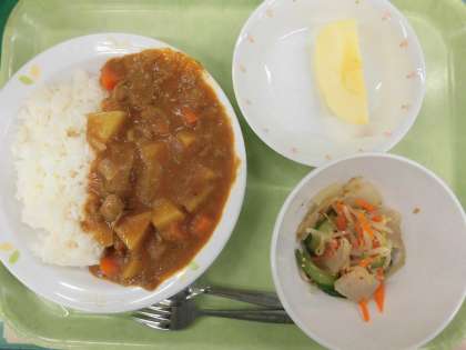 今日はリクエスト給食の日です。主食で1位だったのはカレーライスでした。