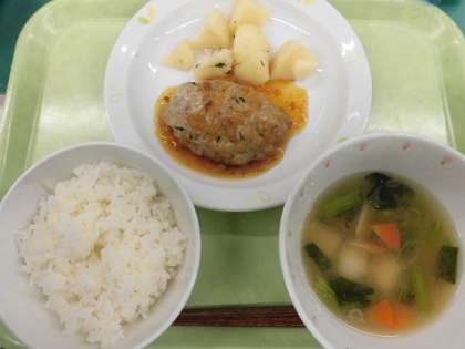 しらたまみぞれ汁には、だいこんと白玉が入っています。だいこんはおろしてみぞれ風に、白玉は雪をイメージしています。