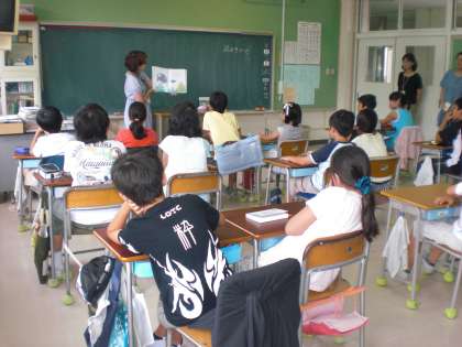 今日7月13日は、読み聞かせの今学期最終回が行われました。今日は高学年の各教室でです。暑い日が続きますが、朝の時間帯ですから、教室は適度に空調がきいた中で集中して物語に聞き入りました。夏休みには、個々に課題をもって、あるいは幅広く様々な本を読書してほしいものです。