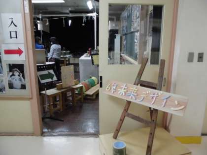 次に、階段を降りて、理科室の6年生の総合「未来デザイン」の展示をご覧ください。(写真3)