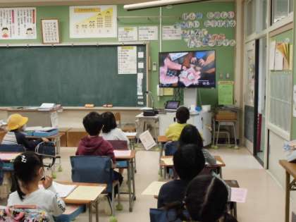 5年生はAEDの紹介動画、6年生は手洗いの実験動画を作成して放送しました。