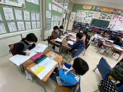 1年生は4月に入学する新1年生のために、学校を紹介する動画を作成しています。