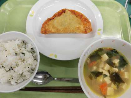 今日は、リクエスト1位のジャンボぎょうざです。給食室で1つ1つ心をこめて具をつつみました。