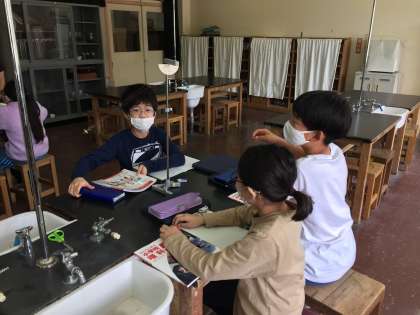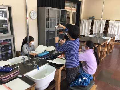 実験は、楽しげな様子と、きちんと段取りを確認し合いながら正確に行う様子が見られ、感心しました。