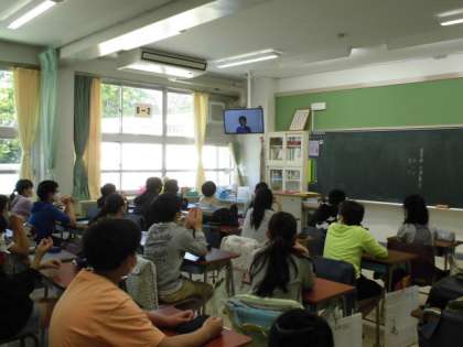 1年生は、画面に映る委員長一人ひとりに「よろしくお願いします」とあいさつをしていました。とてもほほえましかったです。