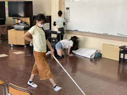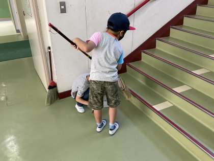 階段には、しゃがみこんできれいにしてくれている2年生。