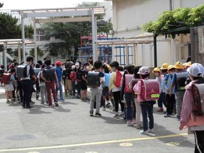 昨日と同様に8時8分ごろ多くの児童が登校し