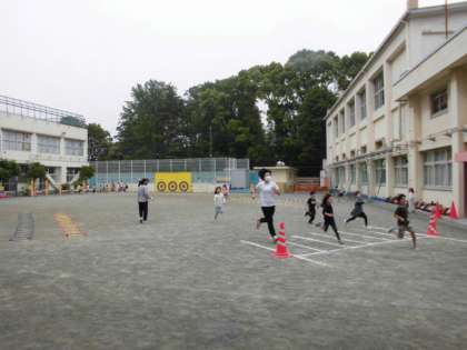 子どもたちと一緒に、お手伝いいただいているお母さんたちや先生も40メートルダッシュをしていました。
