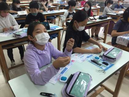 まずは針に糸を通すことや、玉結び、玉どめを学びました。