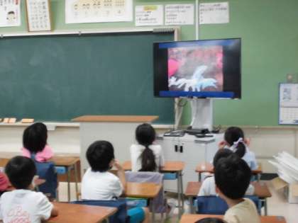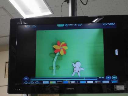 昨日と今日の休み時間、5年生が図工の時間に作成した「カクカクわりピンアニメ」を放送し、発表会をしました。