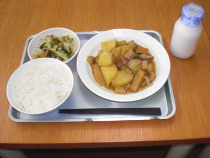 今日の給食は、ごはん・筑前煮・和風サラダ・牛乳です。