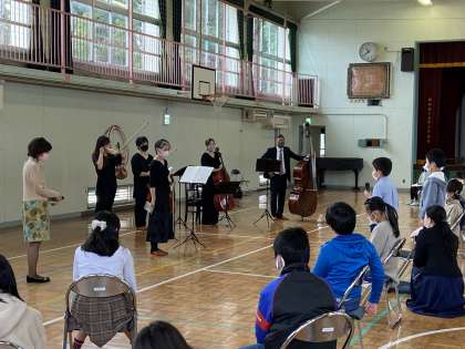 美しい弦楽五重奏でクラシックの名曲を演奏してくださり、最後には校歌を奏でてくださいました。本物の演奏はちがいます。ぜいたくで豊かな時間でした。