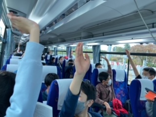 バスレクが始まりました。まずは日光に関するクイズです。みんな静かに盛り上がっています。ガイドさんの案内もよく聴いています。