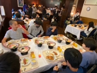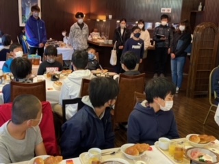 朝食です。この宿でいただく最後の食事です。みんなさわやかな表情でおいしくいただいています。さあ、最終日が始まります。