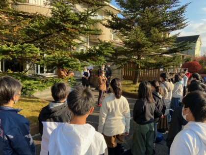 閉園式です。お世話になった宿の方に感謝の言葉を述べて、この生活を振り返りました。みんな仲良く、ここでしかできない体験を共有できたことはかけがえのないことです。