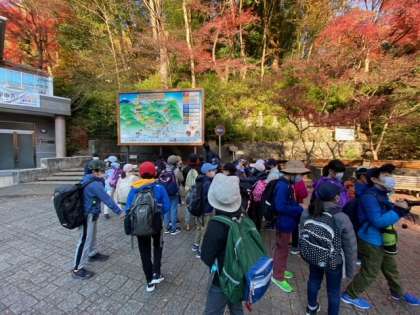 冷たい空気が気持ちいいです。晴れています。紅葉がきれいです。これから1号路を登って山頂を目指します。