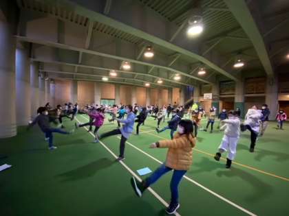おはようございます。川場村の朝です。冷たく気持ちいい冬の空気です。美しいです。朝会を行なっています。体操の後に表現運動発表会で披露したダンスで体を温めます。みんなすてきです。