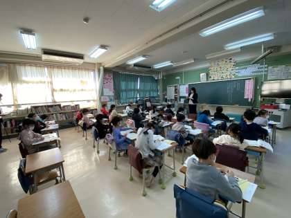 第4段落を読んでいきます。筆者の書いていることと自分たちの経験を結びつけて、学習を自分事として捉えているところが素晴らしいです。体育や休み時間の遊びともつながります。学びはひとつのものです。しっかり考え友達と学び合い、生き生きと発言する子どもの姿がありました。